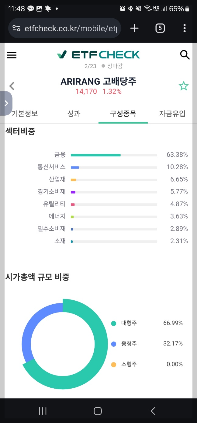 특히 은퇴 이후 현금 흐름을 중요시하는 투자자가 ARIRANG 고배당주 ETF (아리랑 고배당주 ETF) 를 ISA 계좌와 같은 절세 계좌에서 투자(배당 소득 관련 세제 혜택) 시 좀 더 안정적인 포트를 구성할 수 있는 상품이라고 할 수 있겠습니다.