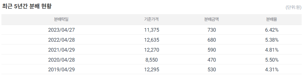 - 배당락일: 2023년 4월 27일 (2024년 배당락일은 미정입니다)